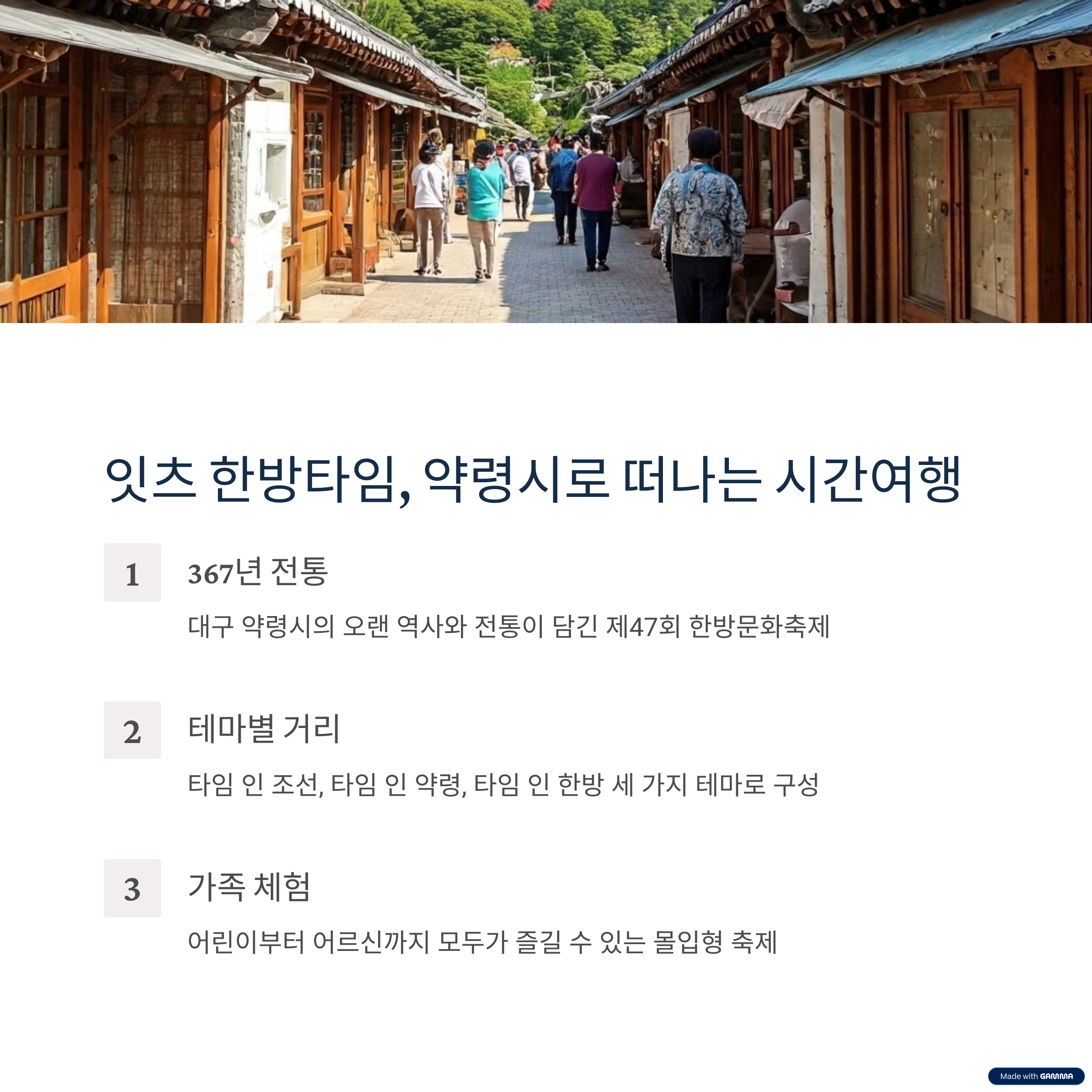 ‘잇츠 한방타임: 약령시로 떠나는 시간여행’이라는 주제로 열리는 제47회 축제는