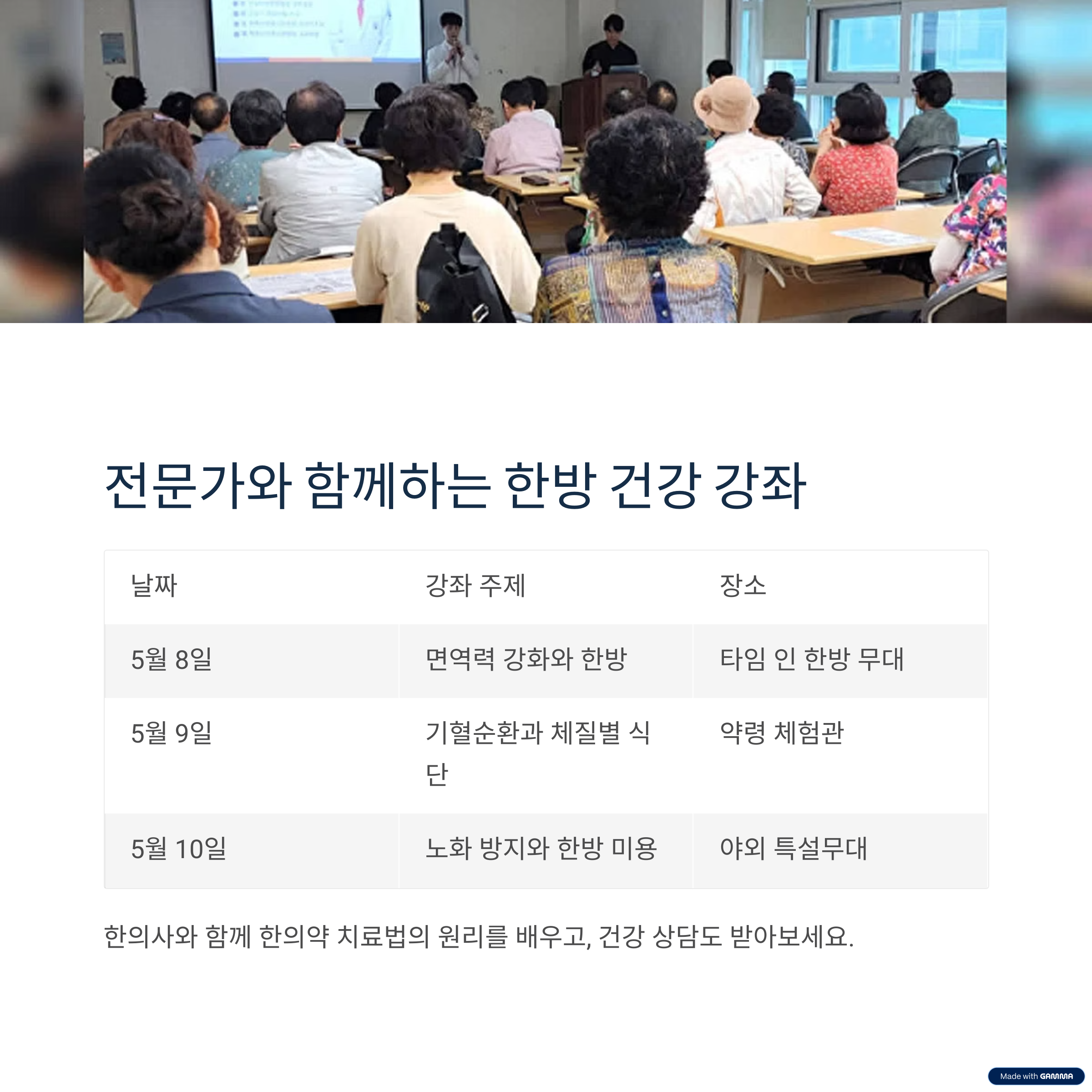 전문가와 함께하는 한방 건강 강좌