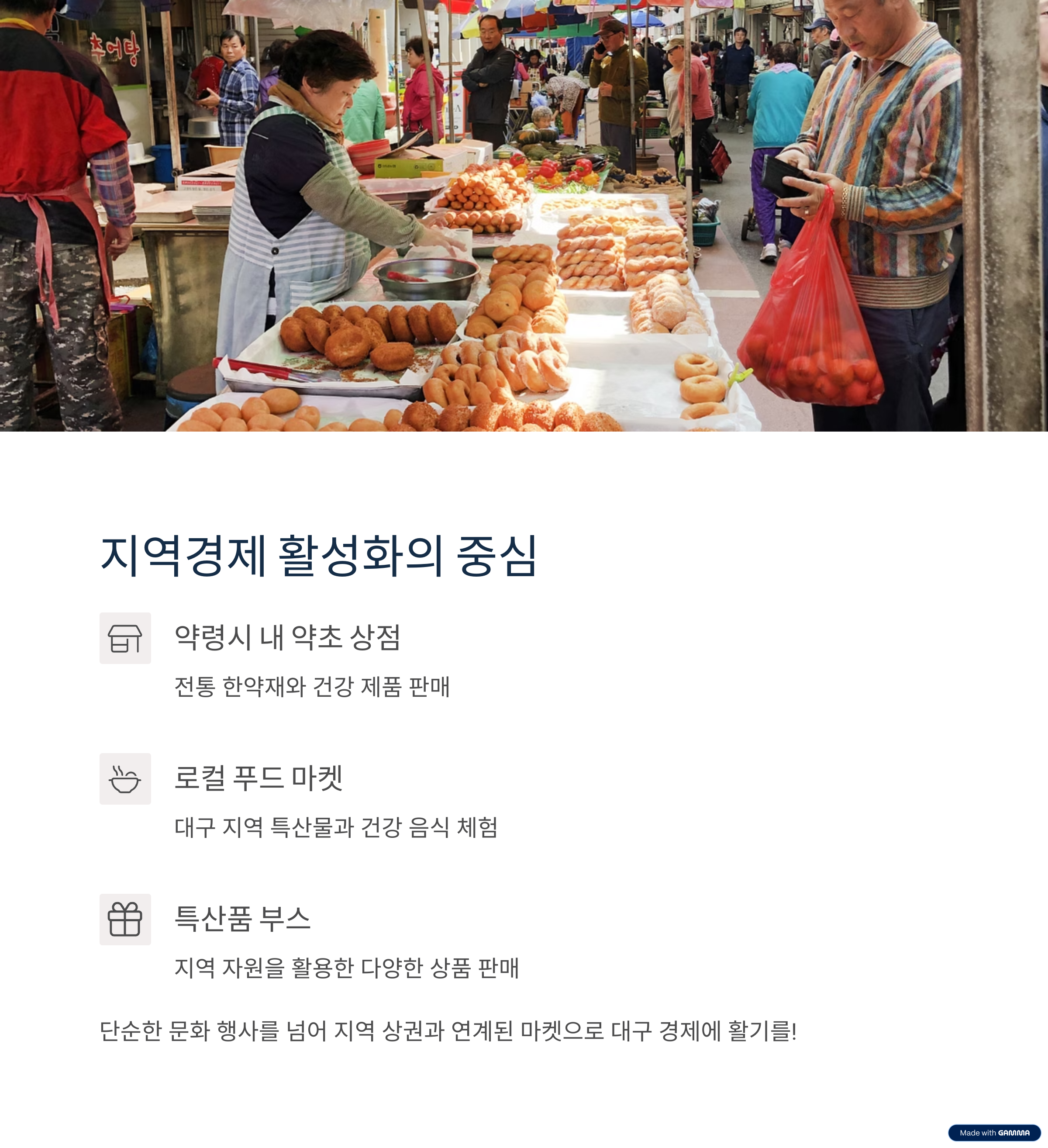 지역 상권과 연계된 마켓 부스를 통해