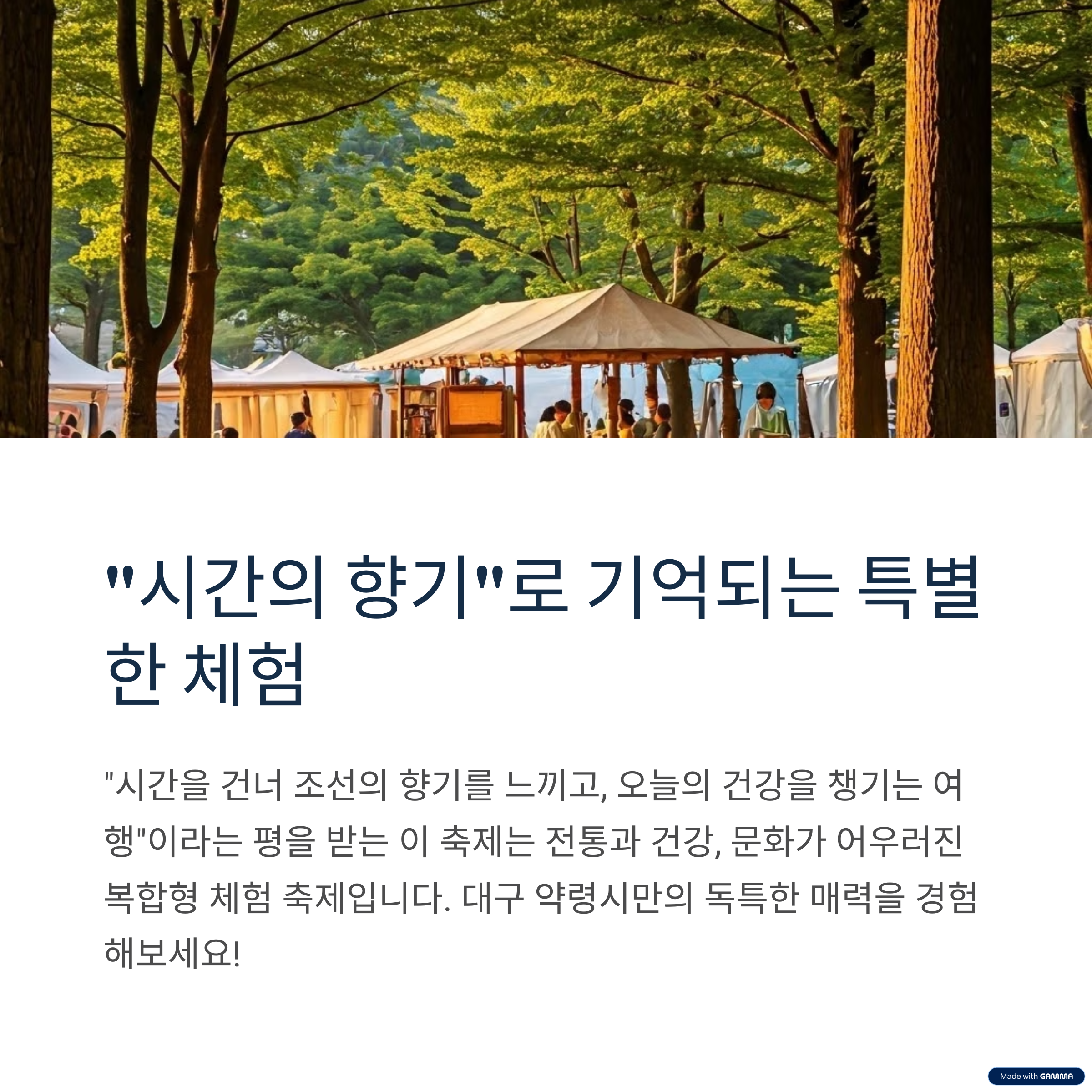 이번 축제는 전통, 건강, 문화가 어우러진 입체형 복합축제입니다.