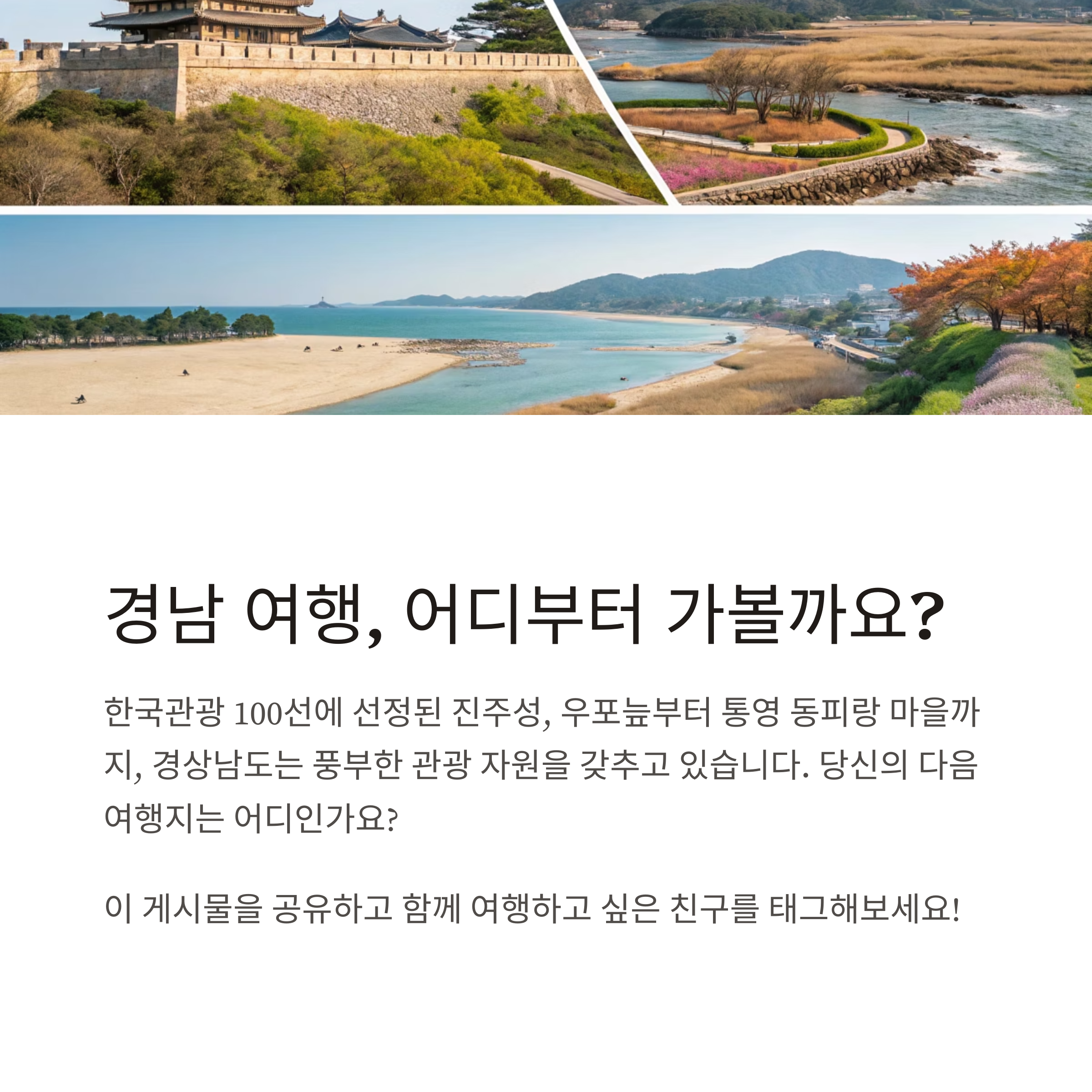감성적인 주말 여행지를 찾으신다면, 한적하면서도 독특한 매력을 가진 경남으로 떠나보세요!