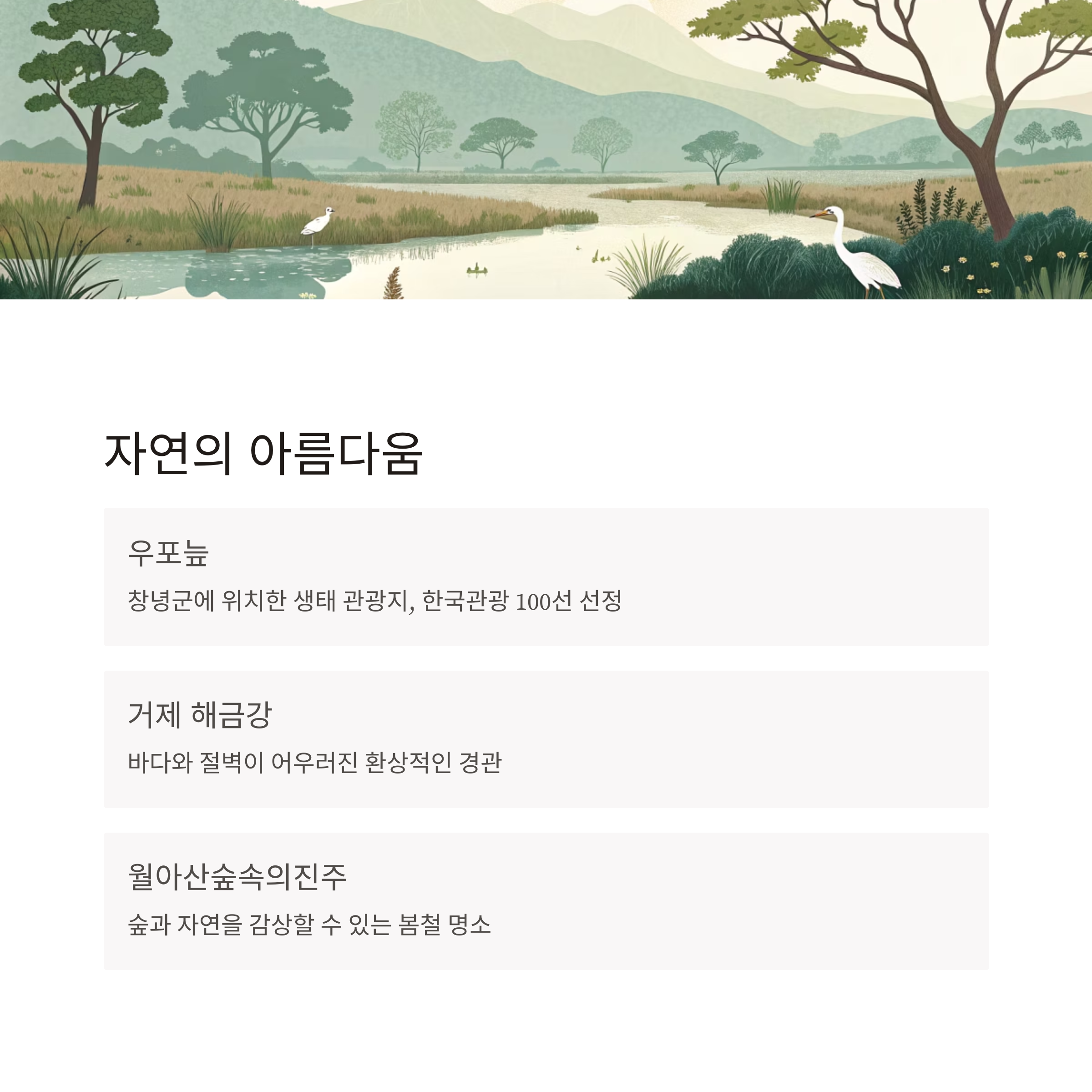 | 창녕 | 우포늪 | 자연 생태 보호 | 철새 관찰 |